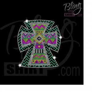 Tribal Pattern Cross Curved-Rhinestone-Bling T-shirt