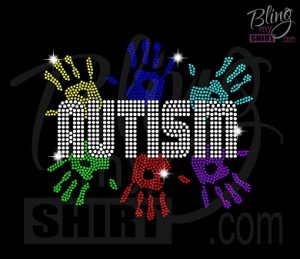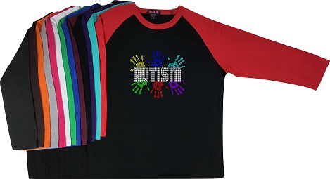 Autism Hands Bling Raglan T-Shirt With Rhinestones