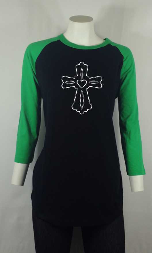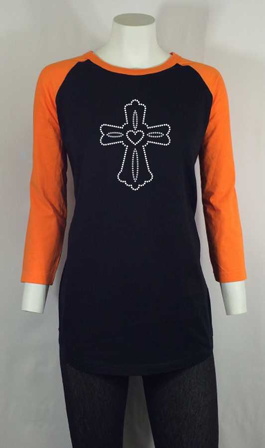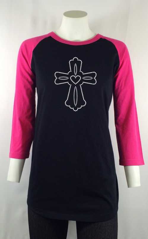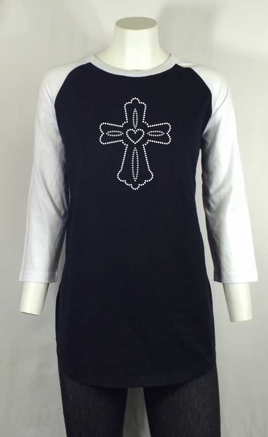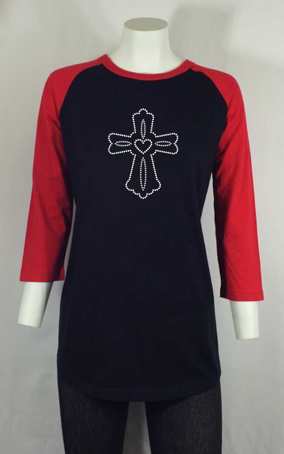 Cross Outlined-Rhinestone-Bling T-shirt