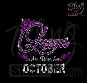 Queens Are Born In October-Rhinestone-Wedding Transfer