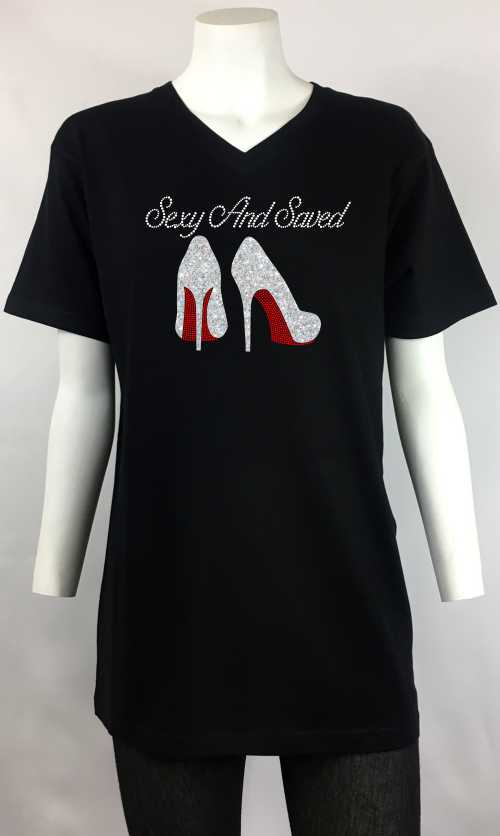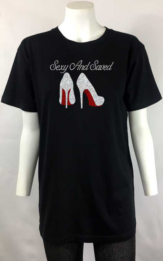 Sexy And Saved-Rhinestone/Glitter-Religious Bling T-shirt
