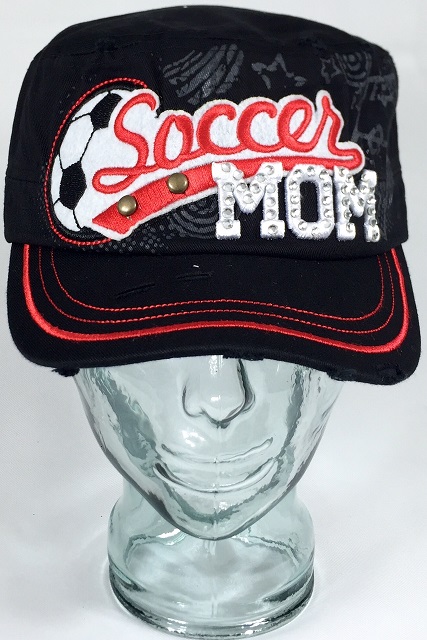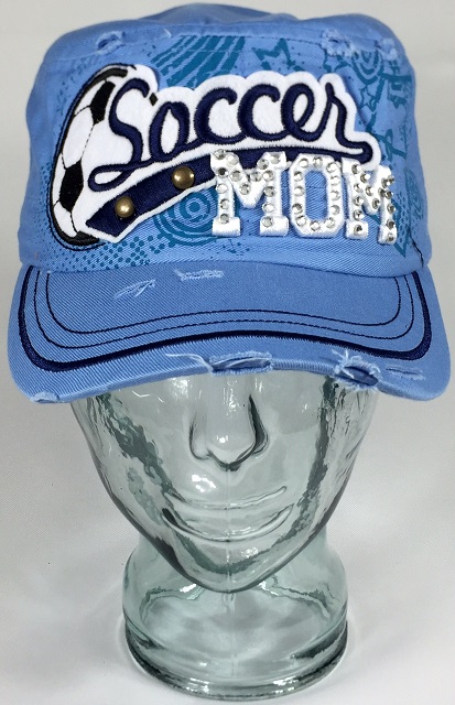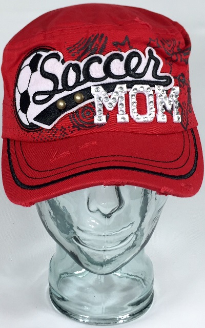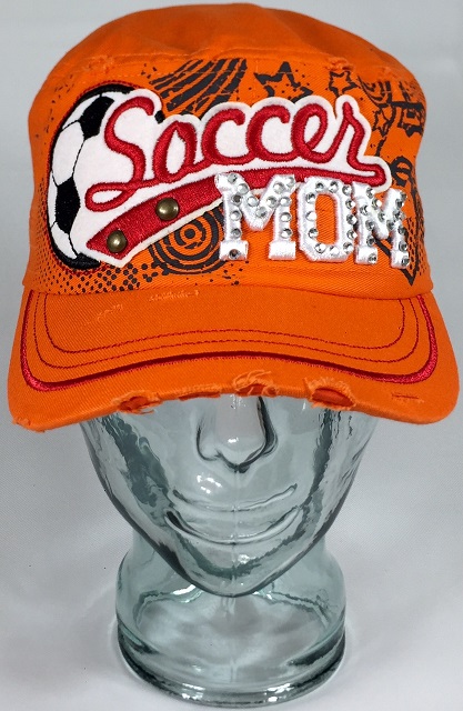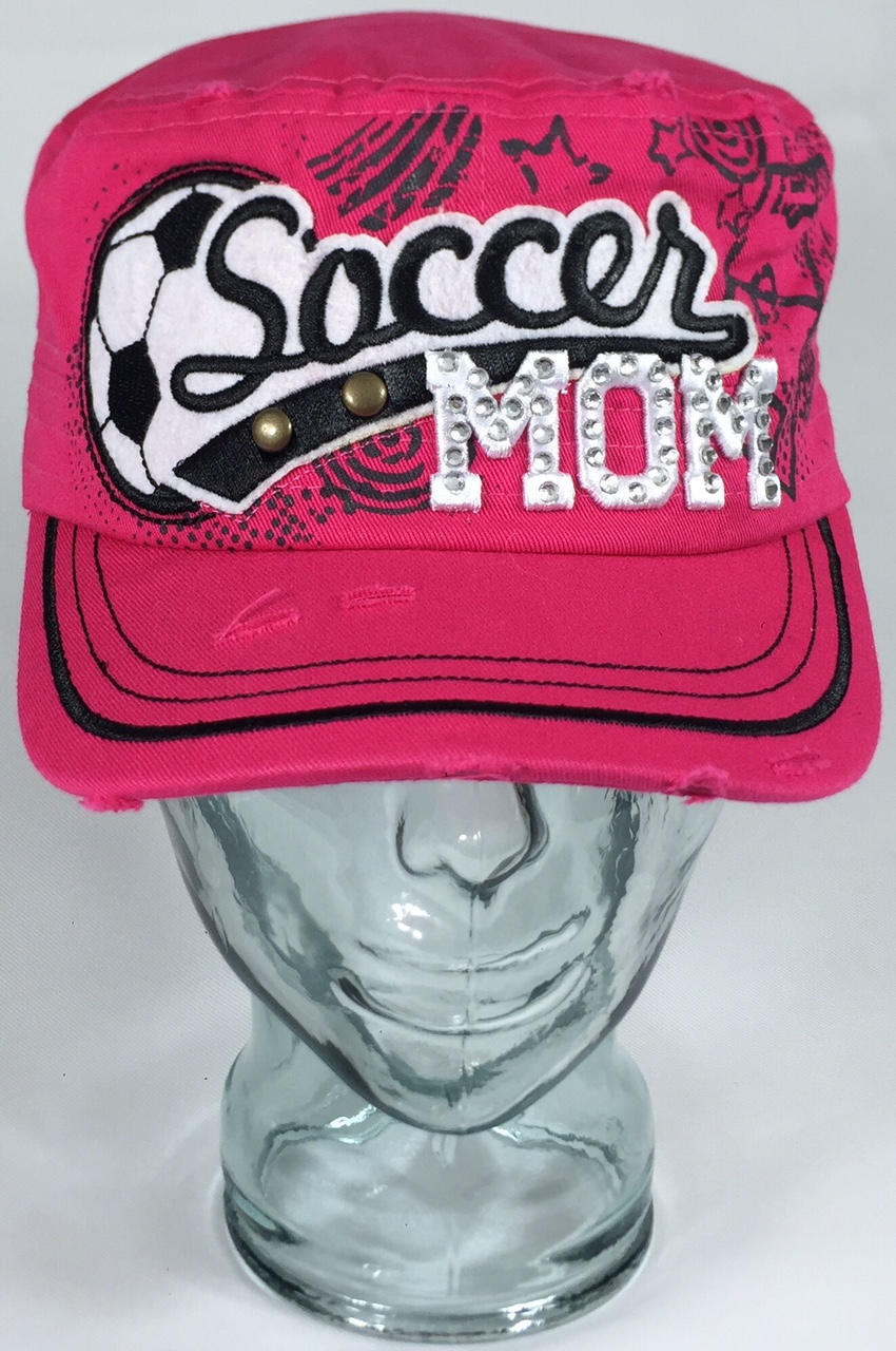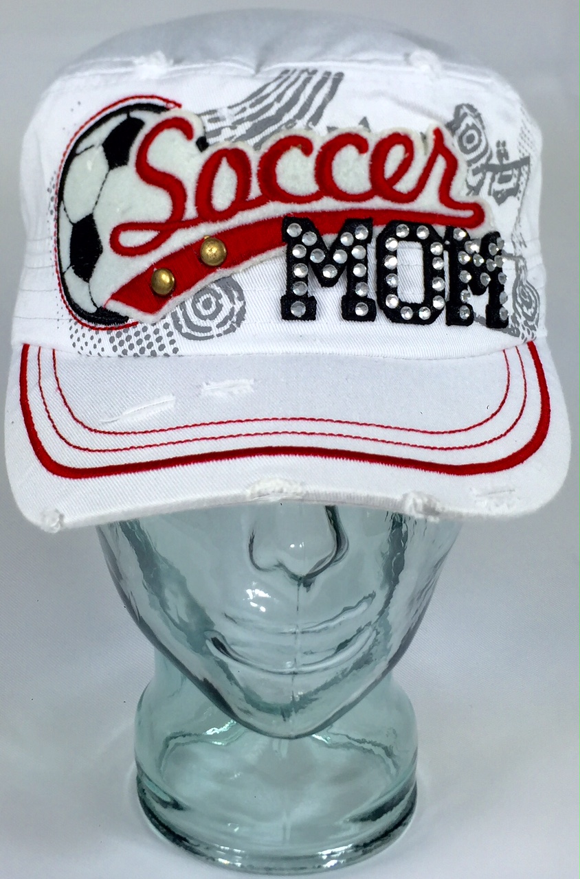 Embrace your inner soccer mom with this great bling cadet style hat! Featuring a soccer ball, “soccer mom”, and bling, this great hat comes in a variety of colors. Perfect for wearing on the sidelines, as you cheer on your child! Get your own great rhinestone bling hat today!