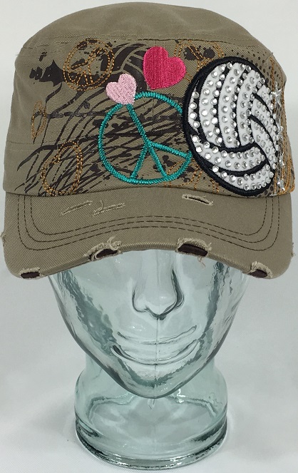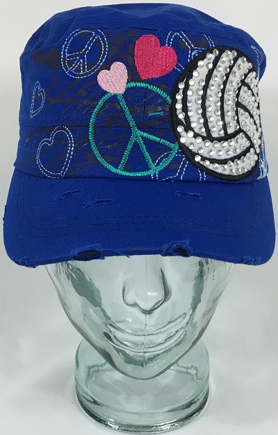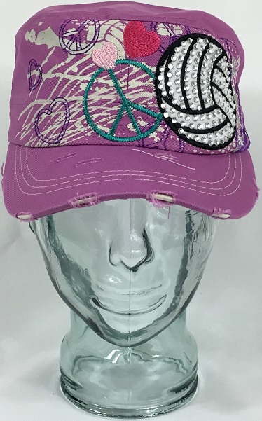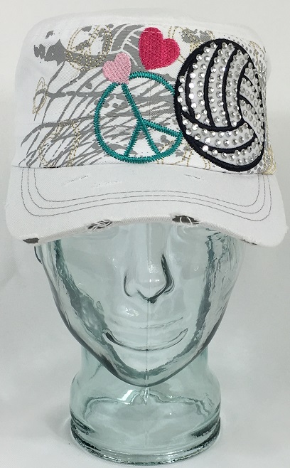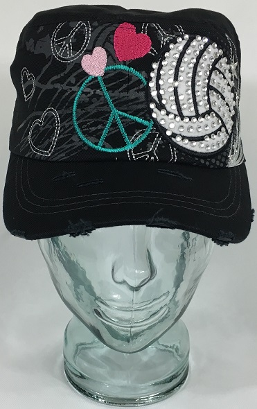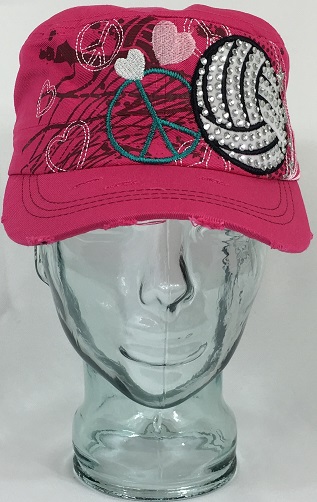 This is a great women’s cadet style hat that features a volleyball embroidered design adorned with rhinestones. Show your volleyball support with this great custom bling rhinestone hat! This bling hat will add sparkle and style to any wardrobe!